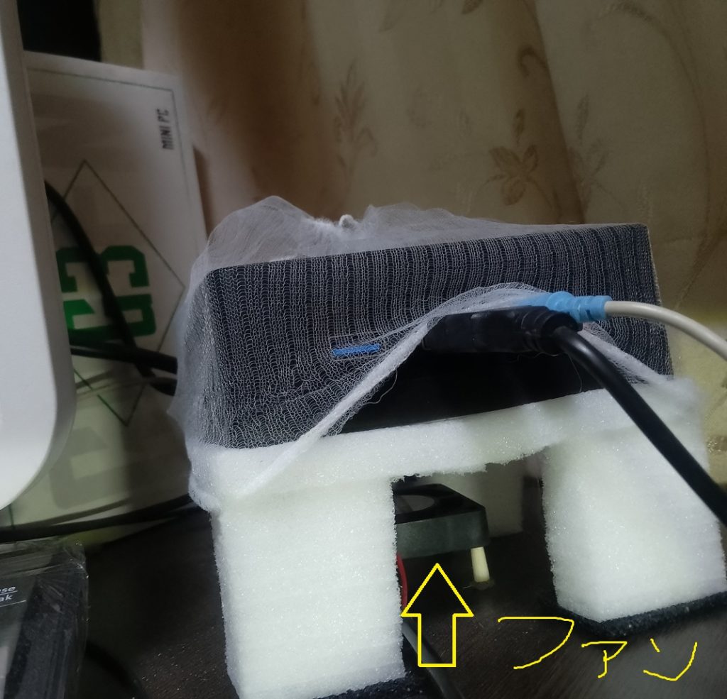 ちょっと見た目がアレですが、ミニPCの蓋を開けて、ミニ