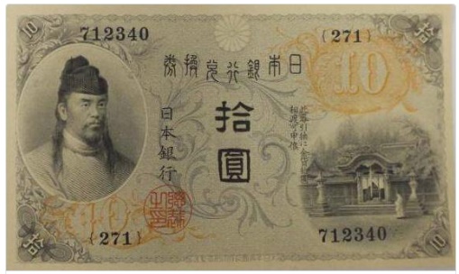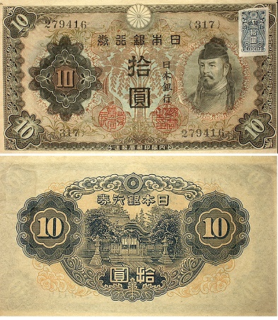 日本銀行券中唯一、左側に肖像画が描かれている。そのため通称は「左和気10円」である。