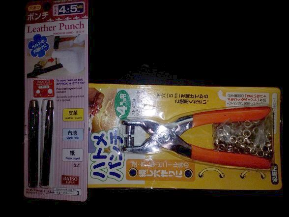 ポンチもハトメパンチも、100円ショップなどで安価に購入できます。