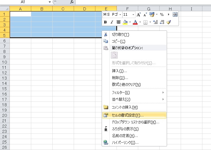 家計簿の形は分かりますよね、例えば、5マス×5マスの表を作りたい