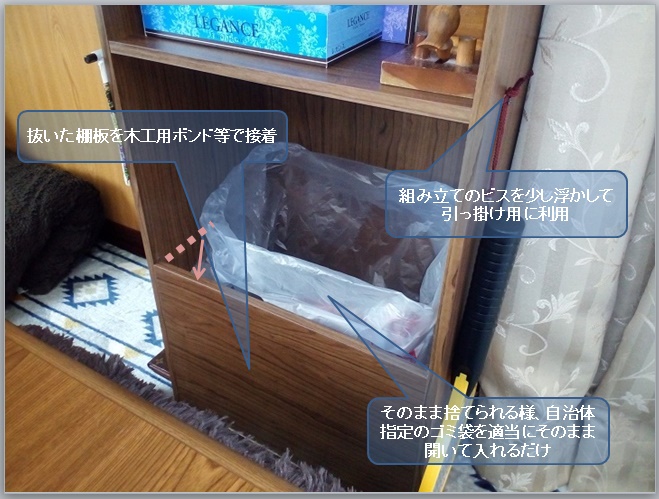 (ゴミ箱部は、最下段以外でももちろんOK、あえて上段もあり)