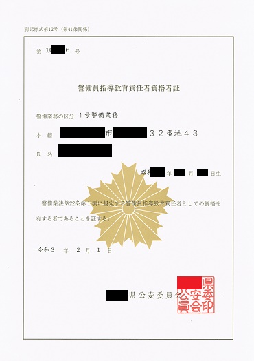 ≪警備員指導教育責任者資格者証(区分1号)≫