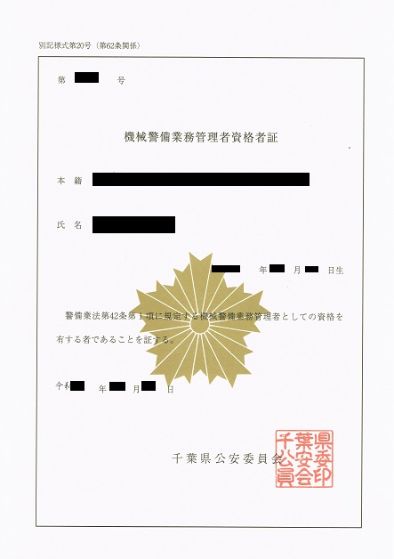 機械警備業務を行っている営業所には、必ずこの資格を持っている人が必要で、掛け持ち不可。