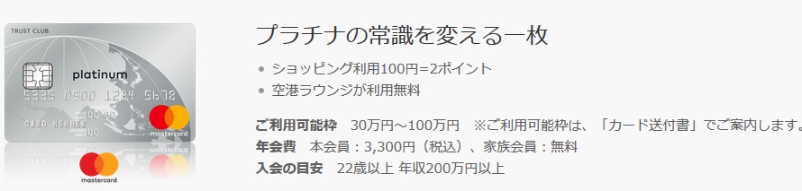 TRUST CLUB プラチナマスターカードの審査難易度と、申し込みから