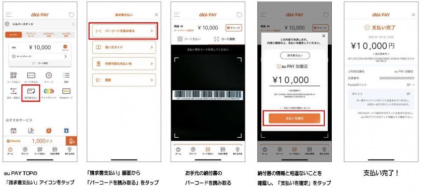 1.「au PAY」アプリTOPの「請求書支払い」アイコンをタップ