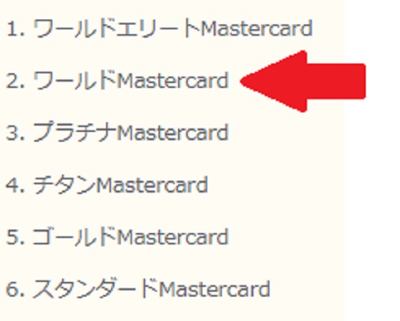 Mastercardにはランクの高い順に、次の6つが用意されています。