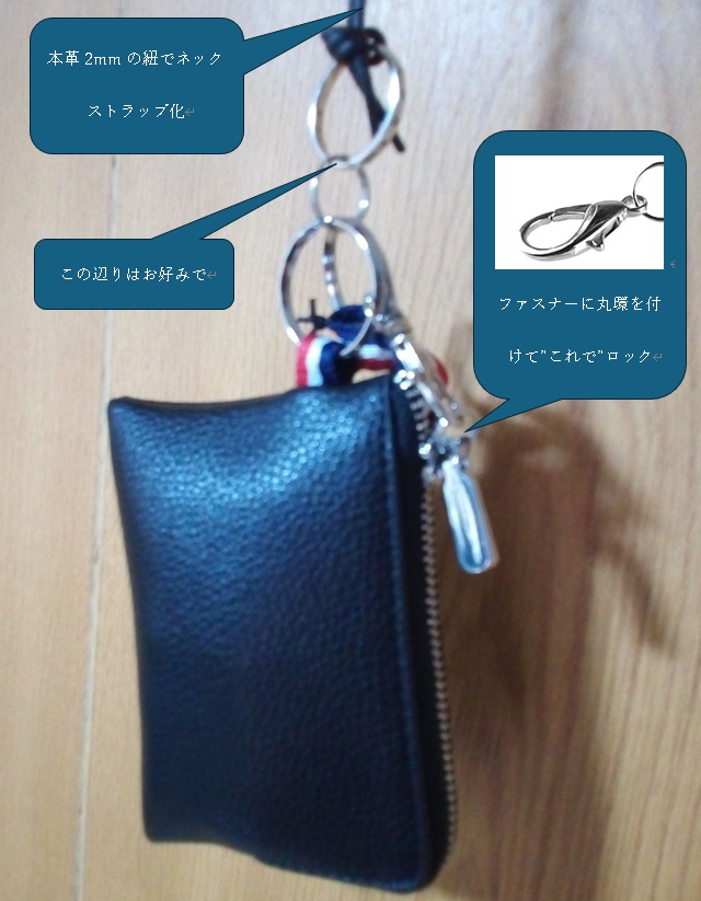 (ストラップを付けられるリング付やファスナー形状のものを選ぶ)